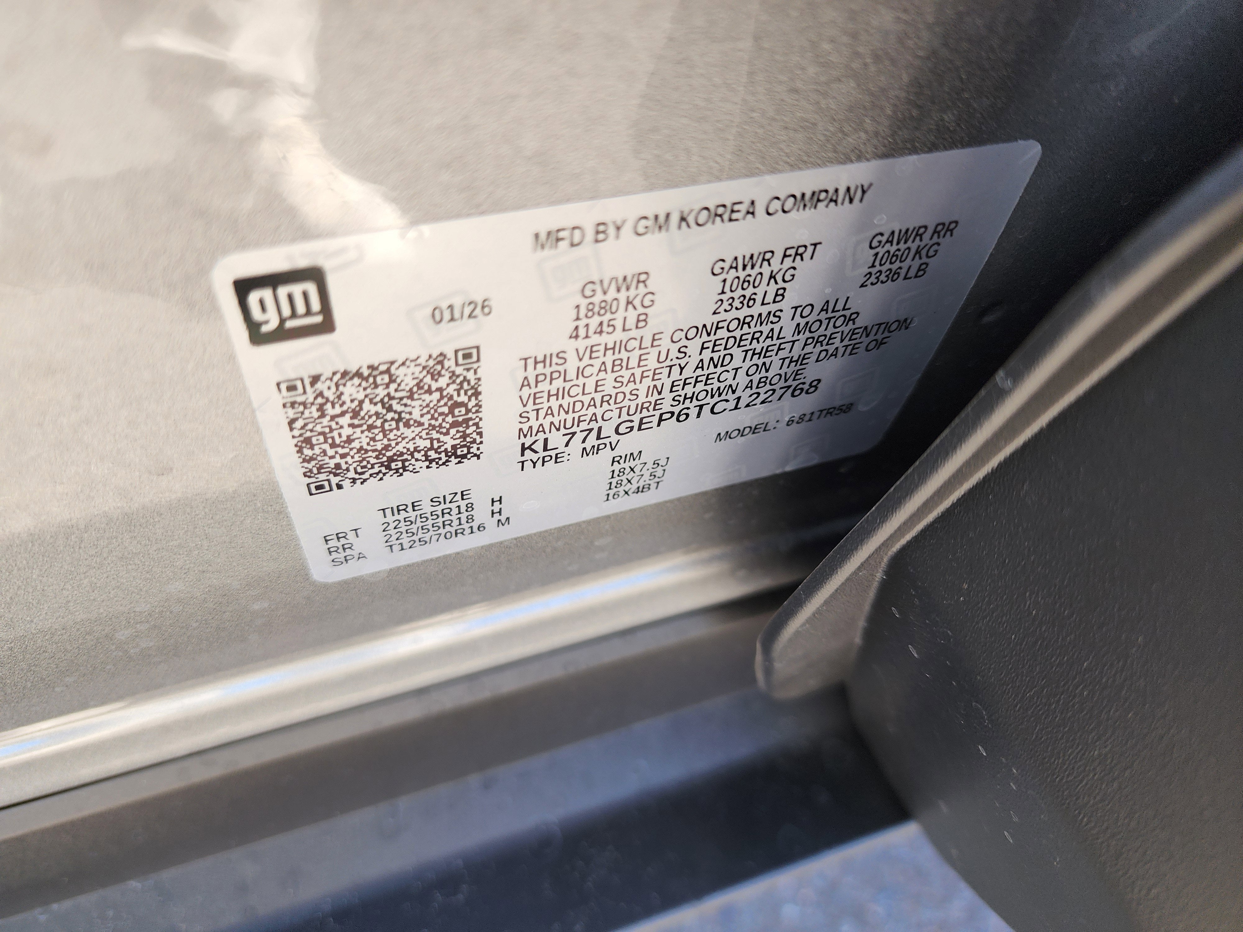 - Tires, 225/55R18 all-season, blackwall
