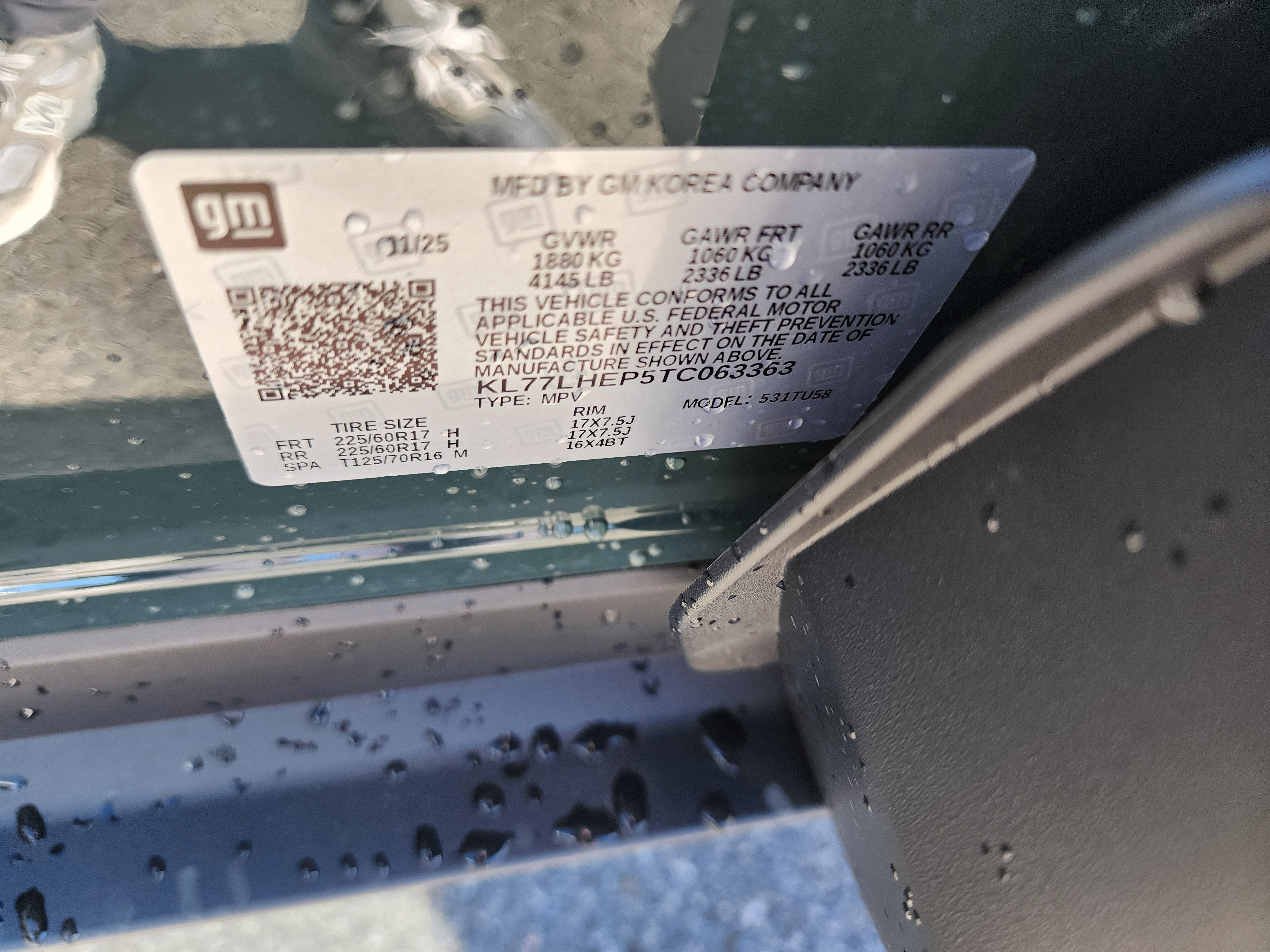 - Tires, 225/60R17 all-season, blackwall