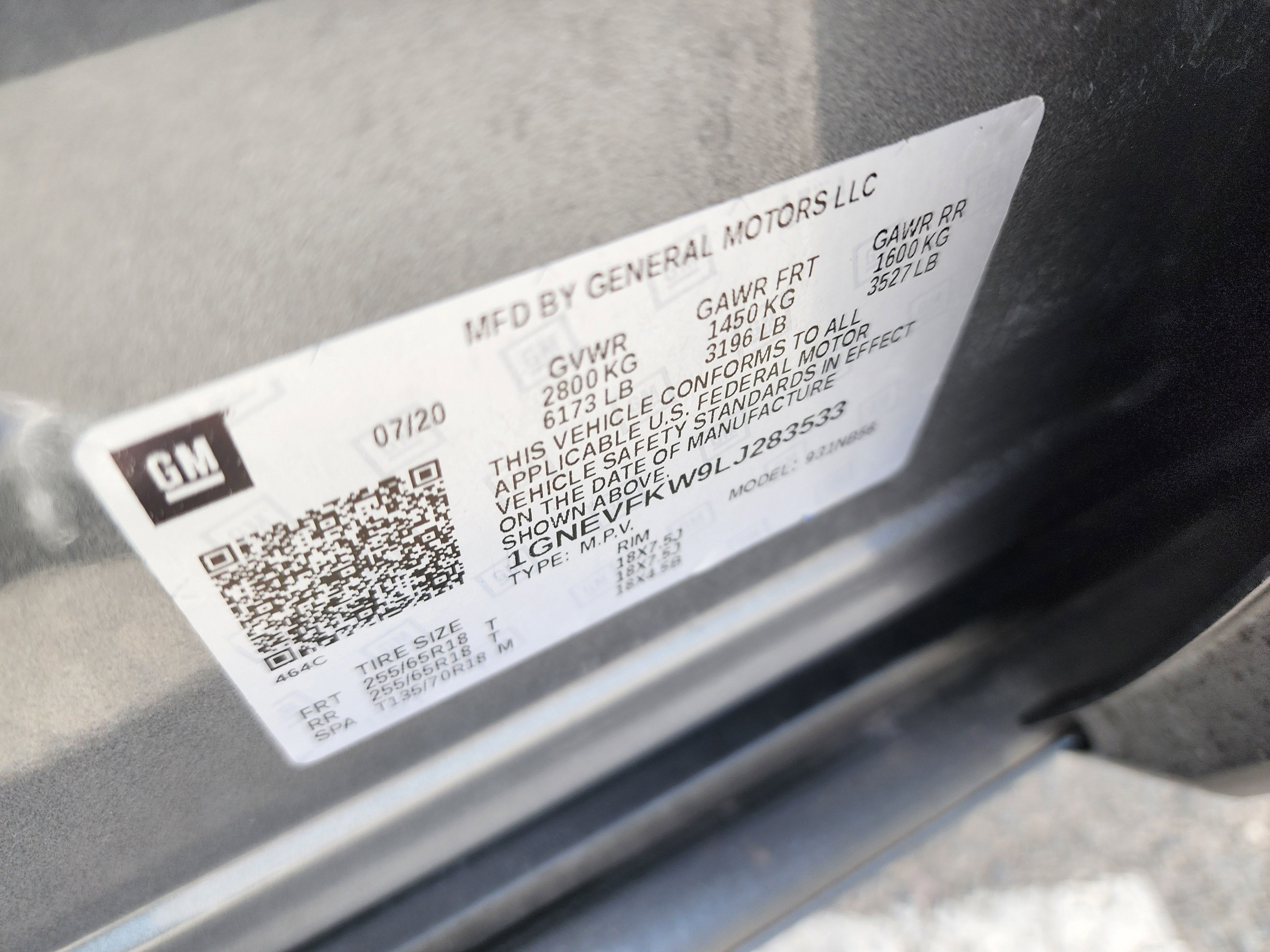 Front License Plate Bracket Mounting Package, Interior Protection Package (LPO) (1st & 2nd Row All-Weather Floor Mats, 3rd Row All-Weather Floor Mats, and All-Weather Cargo Mat (LPO)), Preferred Equipment Group 1LS, AWD, 3.49 Axle Ratio, 3rd row seats: split-bench, 4-Wheel Disc Brakes, 6 Speakers, 8-Passenger Seating (2-3-3 Seating Configuration), ABS brakes, Air Conditioning, Alloy wheels, AM/FM radio, Apple CarPlay/Android Auto, Automatic temperature control, Brake assist, Bright Wheel Locks (LPO), Bumpers: body-color, Compass, Custom Molded Front & Rear Splash Guards (LPO), Delay-off headlights, Driver door bin, Driver vanity mirror, Dual front impact airbags, Dual front side impact airbags, Electronic Stability Control, Emergency communication system: OnStar and Chevrolet connected services capable, Four wheel independent suspension, Front anti-roll bar, Front Bucket Seats, Front Center Armrest, Front dual zone A/C, Front reading lights, Fully automatic headlights, Heated door mirrors, High-Intensity Discharge Headlights, Illuminated entry, Low tire pressure warning, Occupant sensing airbag, Outside temperature display, Overhead airbag, Overhead console, Panic alarm, Passenger door bin, Passenger vanity mirror, Power door mirrors, Power steering, Power windows, Premium Cloth Seat Trim, Radio data system, Radio: Chevrolet Infotainment System AM/FM Stereo, Rear air conditioning, Rear anti-roll bar, Rear reading lights, Rear window defroster, Rear window wiper, Remote keyless entry, Security system, Speed control, Speed-sensing steering, Split folding rear seat, Spoiler, Steering wheel mounted audio controls, Tachometer, Telescoping steering wheel, Tilt steering wheel, Traction control, Trip computer, Variably intermittent wipers, Voltmeter, and Wheels: 18" Bright Silver Painted Aluminum.